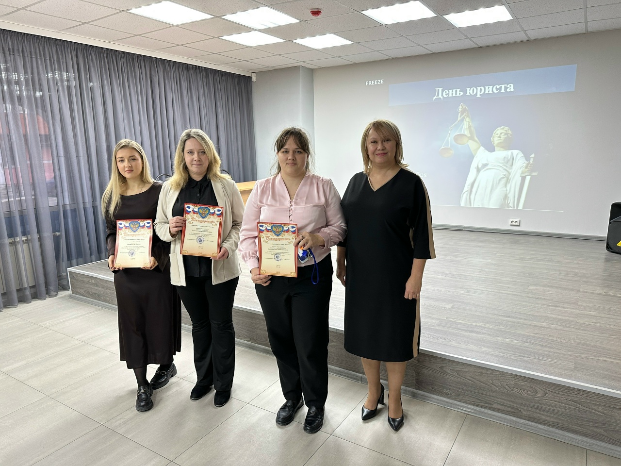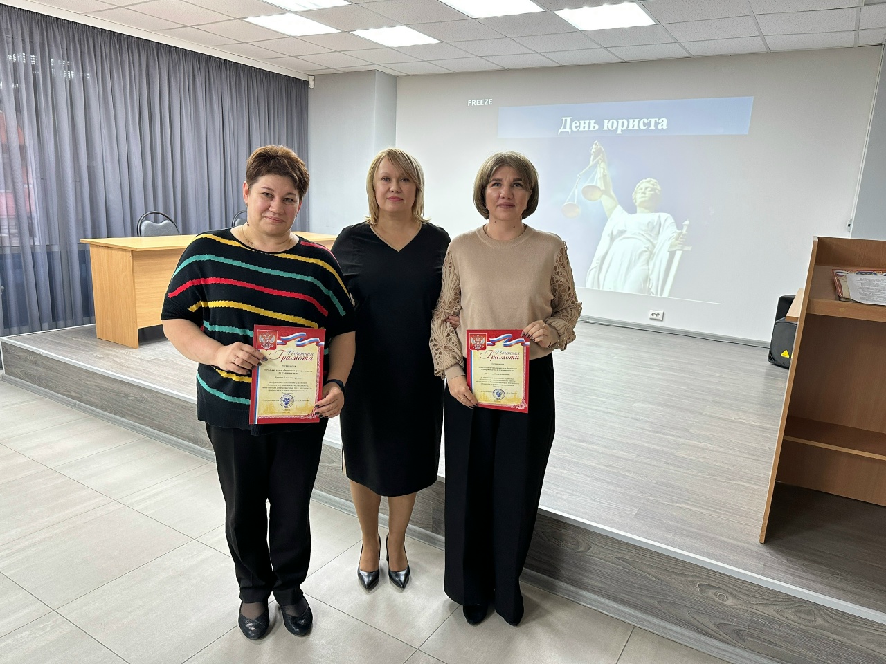 03 декабря 2025 года в связи с профессиональным праздником - Днем юриста, Благодарностью Управления Судебного департамента в Липецкой области за успешное и добросовестное исполнение должностных обязанностей и в связи с 55-летием заслуженно награждена судья Санкина Наталья Анатольевна. помощник судьи Валикова Татьяна Викторовна. Липецкой области награждены: помощник судьи Ширяев Юрий Геннадьевич; помощник судьи Мухортова Валентина Юрьевна; помощник судьи Куницына Ангелина Вячеславовна; помощник судьи Мещерякова Валерия Романовна. Липецкое региональное объединение награждены: помощник судьи Калугина Ольга Олеговна; помощник судьи Михайлова Виктория Юрьевна; помощник судьи Бушуева Марина Викторовна; секретарь судебного заседания Данилова Олеся Владимировна. работы и в связи с Днем юриста награждены Благодарностью: секретарь судебного заседания Маринченко Евгения Александровна; секретарь судебного заседания Камышникова Мария Анатольевна; ведущий специалист Логунова Екатерина Александровна; специалист Касьяненко Яна Ивановна. начальник отдела судопроизводства по уголовным делам Брагина Елена Валерьевна; заместитель начальника отдела судопроизводства по уголовным делам Брежнева Юлия Алексеевна. Липецка - Леоновой Еленой Александровной. ![]() ![]() |